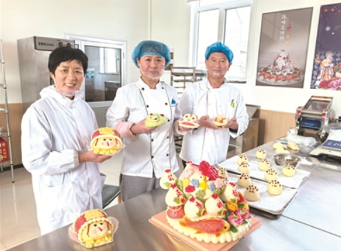 山东省威海市临港区“鹿鸣苹野”清廉片区花饽饽共富工坊内,面点师正在赶制蛇年年货订单。本报记者 沈东方 摄
