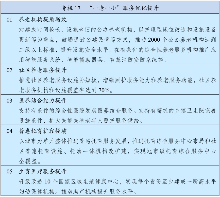 完善残疾人社会保障制度和关爱服务体系,促进残疾人事业全面发展。强化对重度残疾、多重残疾、一户多残等群体兜底保障,健全困难残疾人生活补贴、重度残疾人护理补贴制度及补贴标准动态调整机制,加强残疾儿童康复救助,健全残疾人辅助器具适配补贴制度。完善残疾人社区和家庭支持,加强重度残疾人托养照护,发展精神障碍社区康复。强化残疾人就业帮扶,完善按比例就业、集中就业、自主就业促进机制。发展残疾人文化体育。深入推进科技助残,加强公共设施、信息交流、社会服务无障碍环境建设。