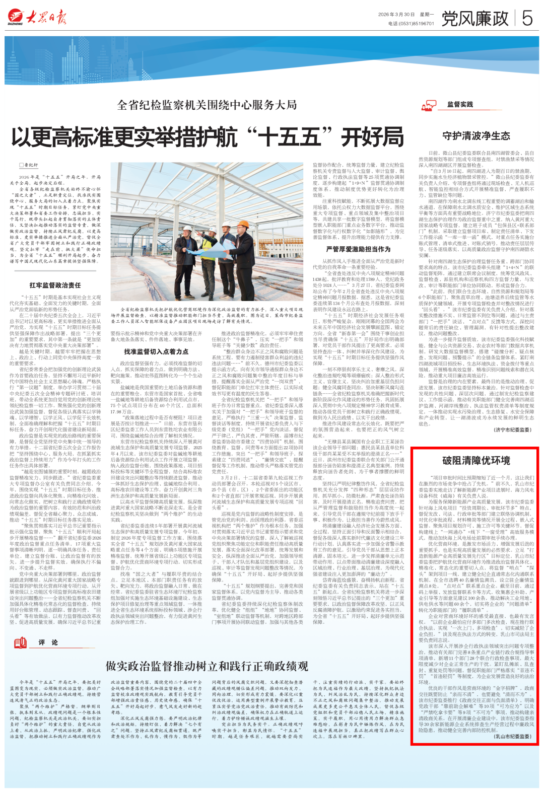 “项目审批时间比预期缩短了近一个月,这让我们在激烈的市场竞争中抢占了先机。”前不久,乳山市纪委监委实地走访了解新能源产业项目进展时,海力风电设备科技(威海)有关负责人说。